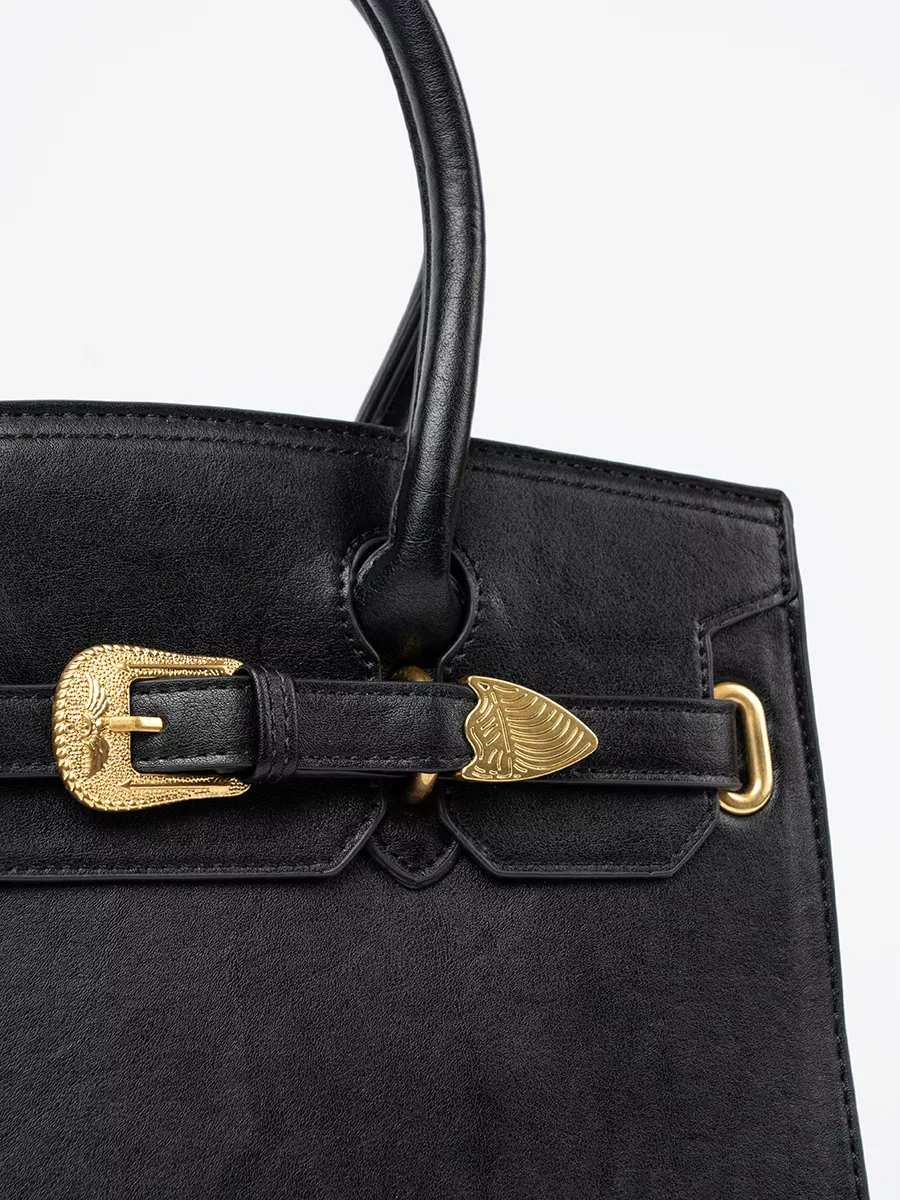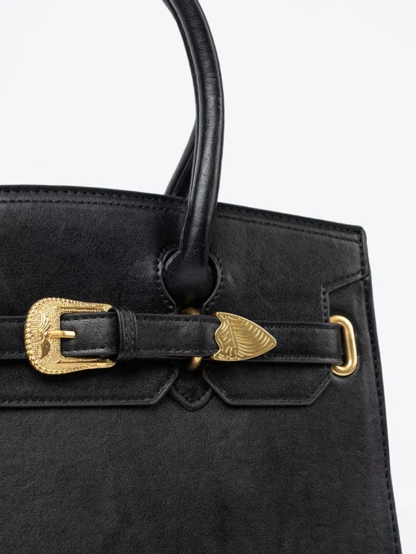 Auksinė sagties detalė šiai juodai rankinei suteikia nepralenkiamą eleganciją ir rafinuotumą. Ji ne tik traukia akį, bet ir tampa pagrindiniu dizaino elementu, kuris išskiria šią rankinę iš kitų. Auksinė spalva simbolizuoja prabangą ir šventiškumą, todėl rankinė puikiai tiks ypatingoms progoms, šventėms ar tiesiog norint įnešti daugiau blizgesio į savo įvaizdį. Tačiau sagties dizainas yra pakankamai universalus, kad derėtų ir prie subtilesnių, kasdienių derinių, suteikdama jiems modernaus prieskonio. Tai investicija į stilių, kuris niekada neišeina iš mados.