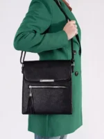 Pabrėžkite savo stilių su šia unikalia juoda pašto rankine, kurioje dera elegancija ir funkcionalumas. Idealiai tinka darbui, apsipirkimui ar susitikimui su draugais, ji tiks bet kurioje situacijoje. Klasikinė spalva ir paprastas dizainas tiks prie bet kokios aprangos, suteiks jai klasės ir modernumo.