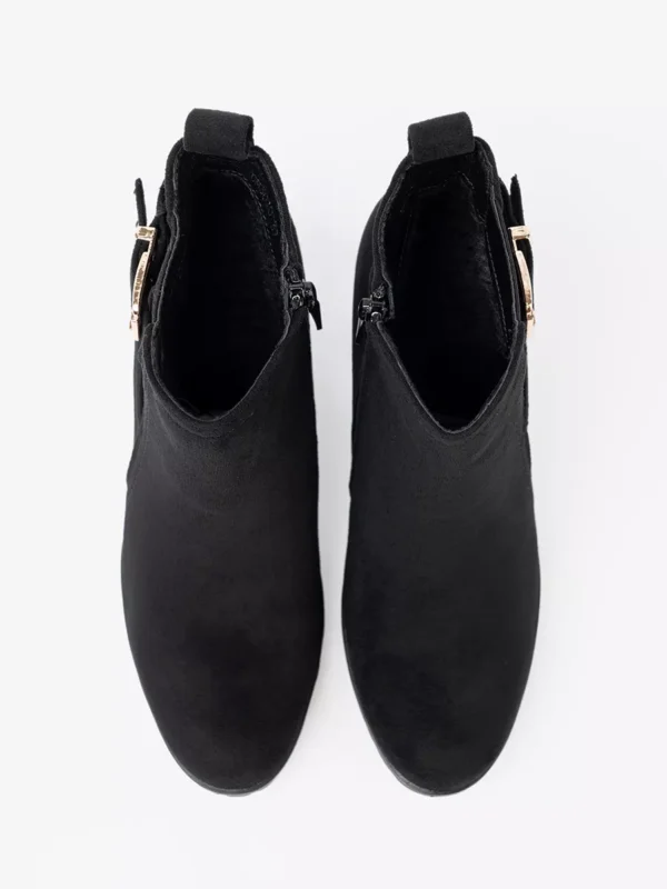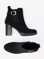 Šie juodi aulinukai su subtilia dekoratyvine sagtimi suteiks Jūsų įvaizdžiui išskirtinumo. Sagtis ne tik akcentuoja batų dizainą, bet ir suteikia jiems klasikinio žavesio. Patogus užsegimas šoniniu užtrauktuku leidžia greitai ir lengvai apsiauti bei nusisegti batus. Minkštas vidpadis ir apgalvota aulo apimtis užtikrina maksimalų komfortą net ilgai avint. Nesvarbu, ar keliaujate į darbą, susitikimą su draugais, ar mėgaujatės savaitgalio pasivaikščiojimu, šie aulinukai taps Jūsų nepakeičiamais palydovais.