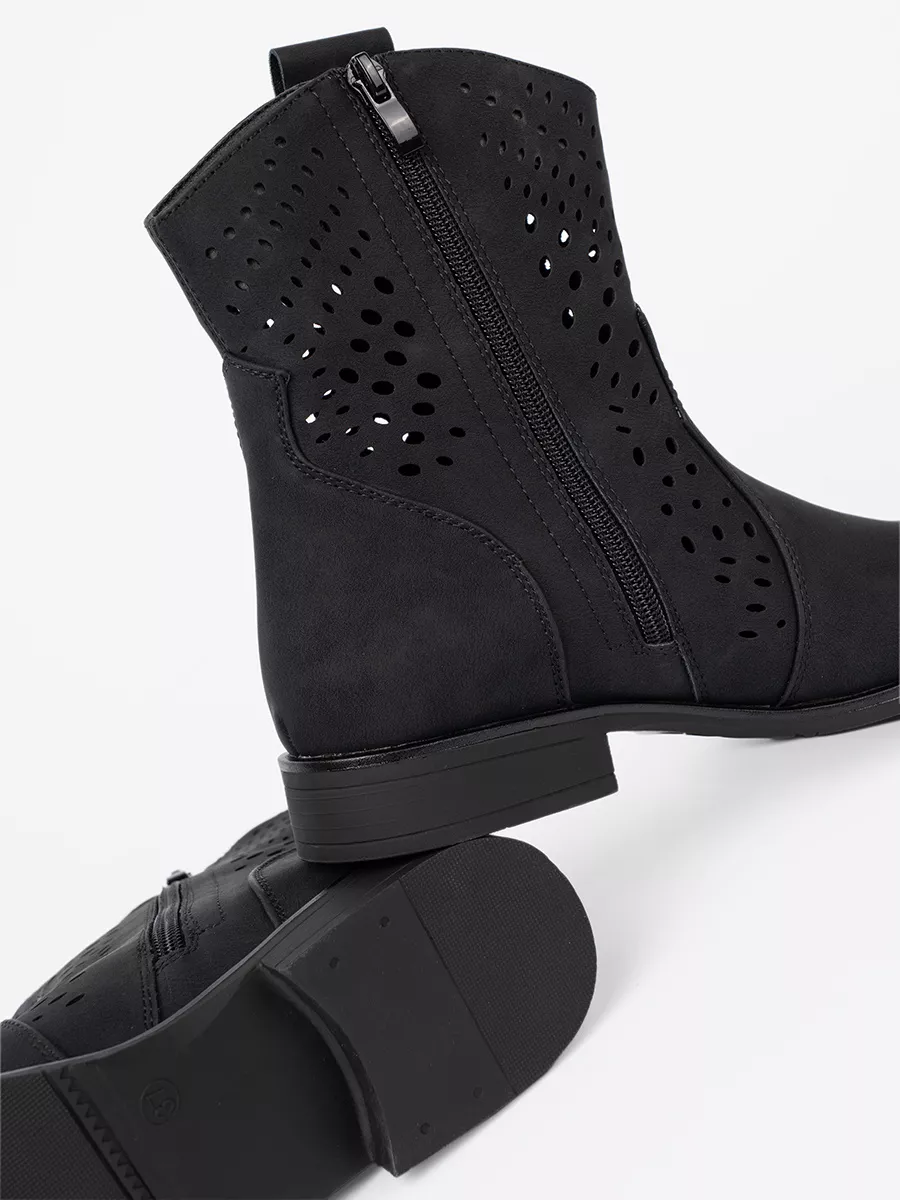 Šie juodi moteriški aulinukai išsiskiria savo moderniu dizainu ir apgalvotomis detalėmis. Atvirko technologija leidžia sukurti sudėtingus, tačiau subtilius raštus, kurie traukia akį ir suteikia batams ypatingumo. Nesvarbu, ar ruošiatės dienai darbe, vakarui su draugais ar ypatingai progai, šie aulinukai papildys Jūsų įvaizdį ir pabrėš Jūsų nepriekaištingą skonį. Patogus užsegimas (pvz. užtrauktukas šone) garantuoja greitą ir lengvą apsiavimą, o kruopščiai suformuotas padas užtikrina stabilumą ir komfortą žingsniuojant.