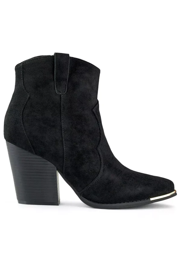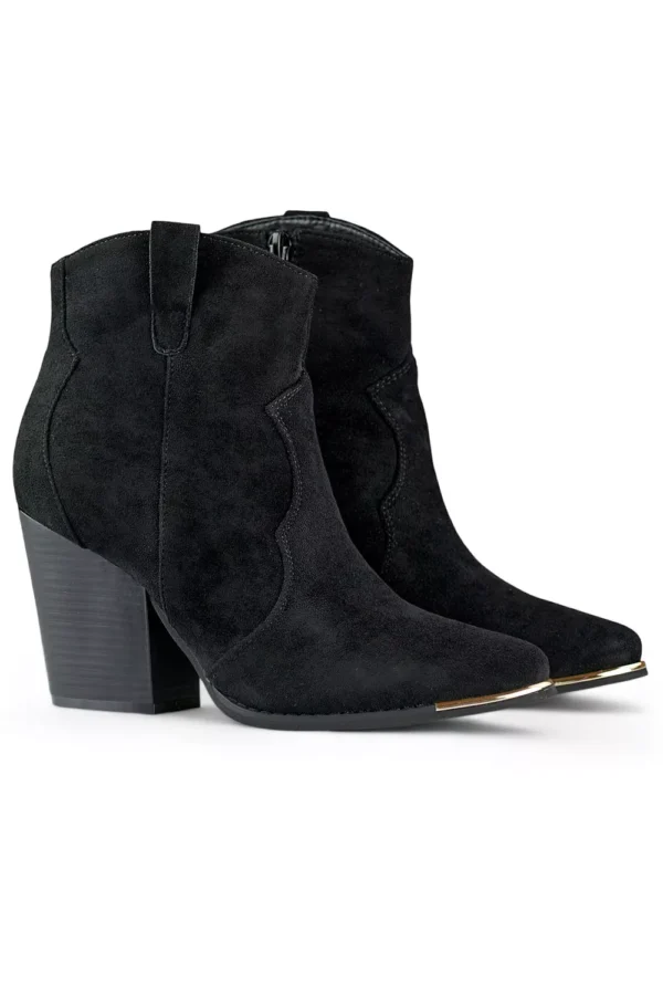 Juodi klasikiniai zomšiniai moteriški aukštakulniai kaubojiški batai