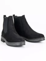 Šie juodi aulinukai yra tikra stiliaus ikona. Klasikinė juoda spalva leidžia juos lengvai derinti su įvairiais drabužiais – nuo džinsų ir suknelių iki elegantiškų kelnių ar sijonų. Aulinukų dizainas pasižymi subtiliomis detalėmis, kurios pabrėžia jūsų asmeninį skonį. Patogus aulas ir tvirtas, bet stilingas padas garantuoja komfortą visą dieną, nepaisant oro sąlygų ar veiklos. Tai batai, kurie ne tik atrodo puikiai, bet ir rūpinasi jūsų kojomis.
