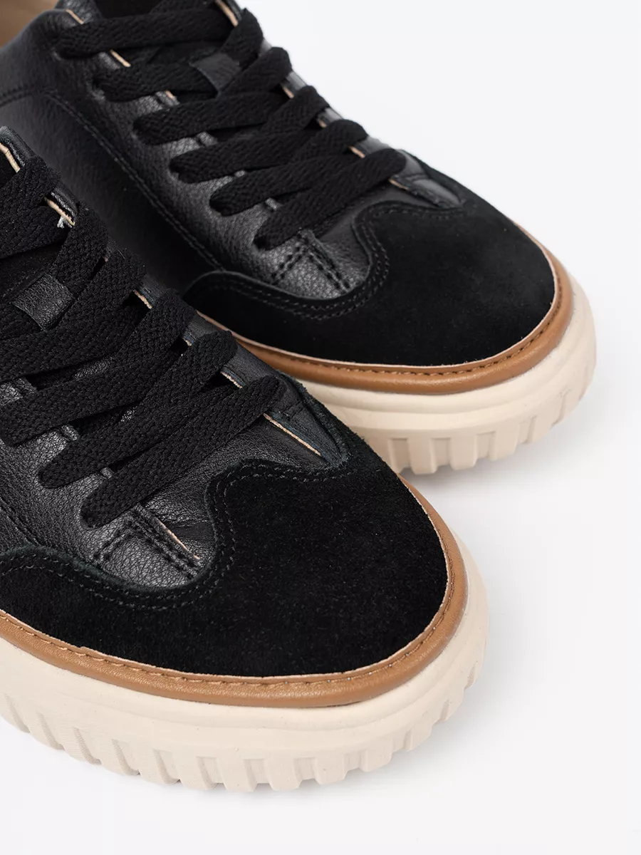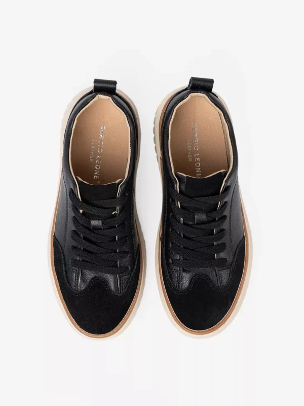 Atraskite nepriekaištingą stiliaus ir patogumo derinį su šiais išskirtiniais juodais odiniais kedais iš naujausios Sergio Leone kolekcijos. Sukurti moterims, vertinančioms aukščiausią kokybę ir modernų dizainą, šie batai akimirksniu papildys jūsų garderobą. Pagaminti iš aukščiausios kokybės natūralios odos, jie garantuoja ilgaamžiškumą ir malonų dėvėjimo jausmą visą dieną. Klasikinė juoda spalva susipina su elegantiška, kreminės (beigiškos) spalvos platforma, kuri ne tik suteikia papildomo aukščio, bet ir sukuria išskirtinį, madingą siluetą. Šie kedai puikiai tiks tiek kasdieniam dėvėjimui, tiek specialioms progoms, leidžiant Jums jaustis užtikrintai ir stilingai bet kurioje situacijoje.