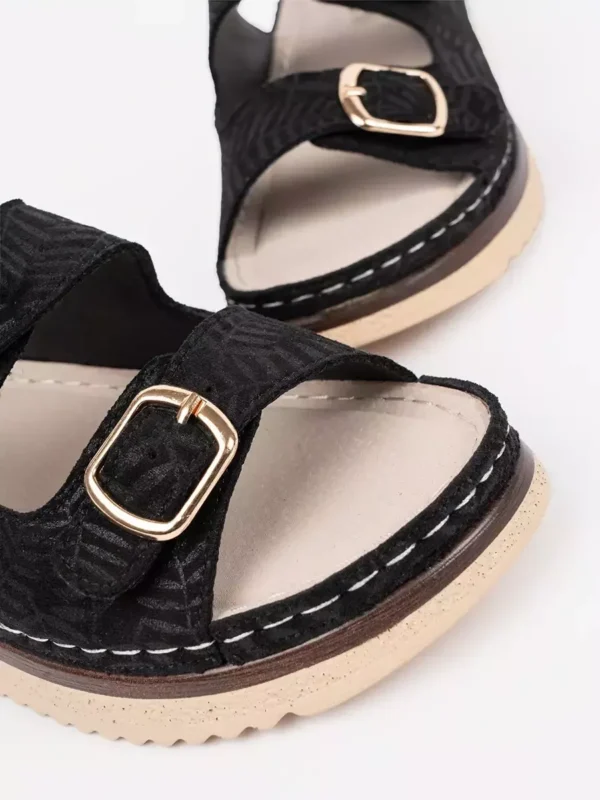 Juodieji sandalai išsiskiria subtiliais auksiniais detalėmis, kurios pabrėžia jūsų stiliaus pojūtį ir suteikia ypatingą žavesį. Šie aksesuarai ne tik puikiai dera su bet kokia drabužių spalva, bet ir pabrėžia jūsų išskirtinumą, padėdami lengvai atkreipti dėmesį bet kokioje kompanijoje.