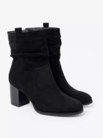 Mūsų juodi zomšiniai aulinukai yra pagaminti iš kruopščiai atrinkto natūralaus zomšo, kuris yra ne tik malonus liesti, bet ir pasižymi ilgaamžiškumu. Zomšas suteikia batams išskirtinę tekstūrą ir gilų, sodrų juodą atspalvį. Vidinis aulas yra paminkštintas, o vidpadis sukurtas atsižvelgiant į ergonomiką, kad jūsų pėda jaustųsi patogiai net ir po daugelio valandų dėvėjimo. Minkštas zomšas ir apgalvota vidinė konstrukcija užtikrina, kad šie batai taps jūsų mėgstamiausiu pasirinkimu šaltajam sezonui.