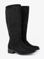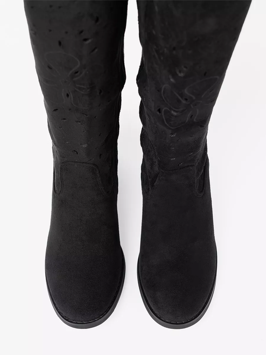 Šie juodi ilgaauliai batai yra sukurti moterims, vertinančioms klasiką ir šiuolaikiškumą. Aukštis per kelį vizualiai ilgina kojas ir suteikia figūrai grakštumo. Minkštos, malonios lietimu zomšos tekstūra neabejotinai traukia akį. Dizainas apgalvotas iki smulkmenų: galbūt tai subtilus dirželis, galbūt minimalistiškas užkulnis – kiekviena detalė dvelkia prabanga ir subtilumu. Tai universalus pasirinkimas, tinkantis tiek pasivaikščiojimams mieste, tiek ypatingoms šventėms. Be to, universalus juodas atspalvis lengvai priderinamas prie įvairių drabužių spalvų paletės, leisdamas Jums eksperimentuoti ir kurti vis naujus derinius.