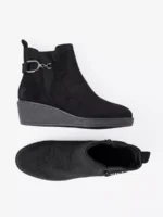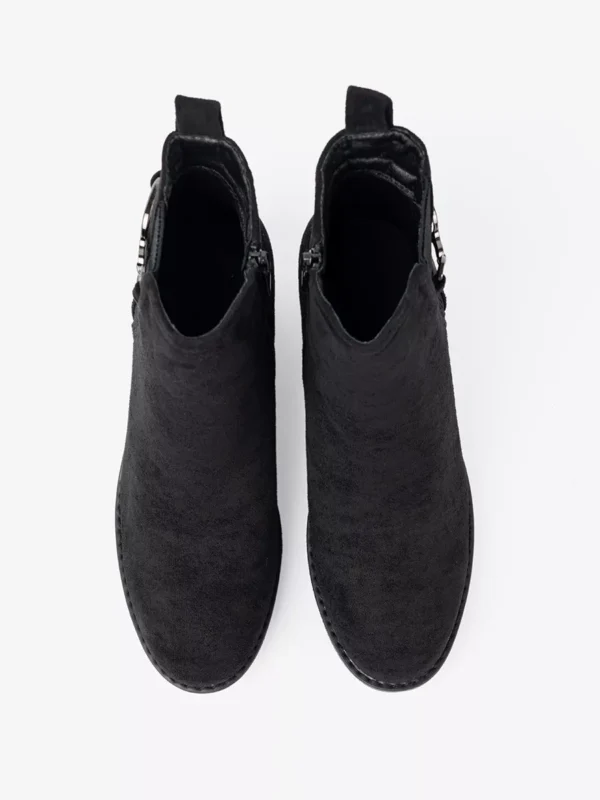 Atraskite nepaprastą stilių ir komfortą su šiais išskirtiniais juodais zomšiniais aulinukais. Sukurti atsižvelgiant į naujausias mados tendencijas ir aukščiausią kokybę, šie aulinukai taps nepakeičiama Jūsų garderobo dalimi. Minkštas, aukščiausios rūšies zomšas apgaubia pėdą švelnumu, o klasikinis juodas atspalvis užtikrina universalumą – derinkite juos tiek su elegantiškais sijonais ir suknelėmis, tiek su džinsais ar kelnėmis. Specialiai integruotas elastinis intarpas šoninėje dalyje garantuoja neprilygstamą patogumą bei lengvą apsiavimą, leidžiantį jaustis užtikrintai ir patogiai visą dieną. Tvirtas kulniukas suteikia stabilumo ir subtiliai pailgina kojas, pabrėžiant Jūsų figūros privalumus.