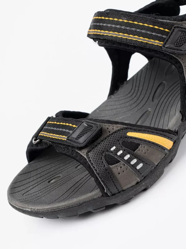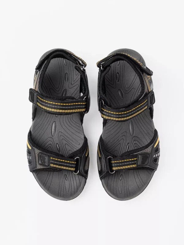 Tobulinkite savo nuotykių patirtį su juodais trekking tematikos sandalais, subtiliai dekoruotais geltonais akcentais. Šie sandalai sukurti užtikrinti ne tik stilingą išvaizdą, bet ir komfortą, kad ir kokia būtų jūsų kelionė. Nesvarbu, ar keliaujate mieste, ar natūralioje aplinkoje – šios avalynės patikimumas jus lydės visur.