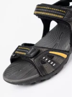 Juodos trekking sandalai stilizuoti elegantiškomis geltonomis detalėmis, kurios suteikia jiems išskirtinumo ir modernumo. Pagaminti iš aukštos kokybės medžiagų, šie sandalai yra atsparūs nusidėvėjimui ir užtikrina ilgalaikį naudojimą. Kojų formai pritaikyta konstrukcija leis jums jaustis patogiai net po ilgos kelionės.