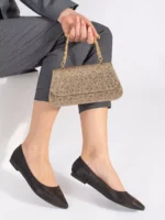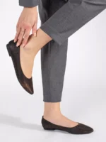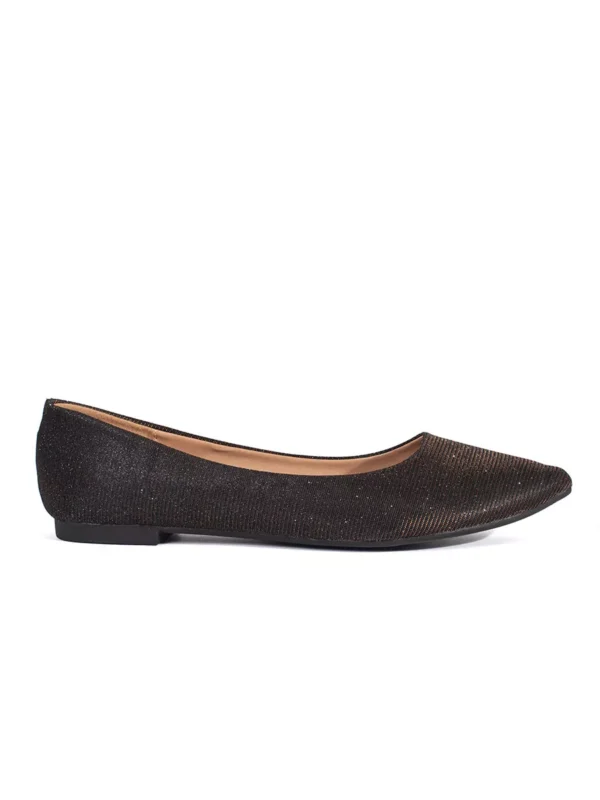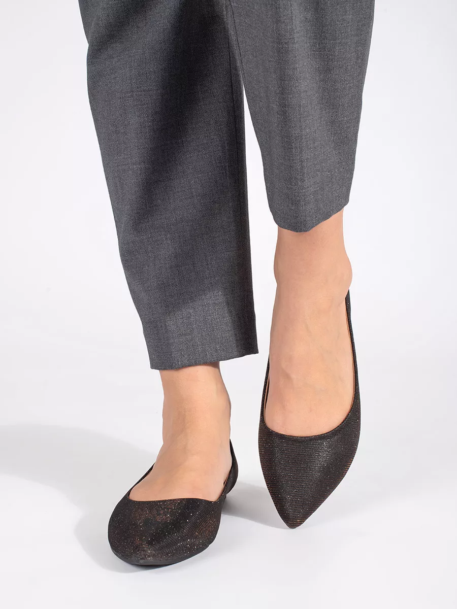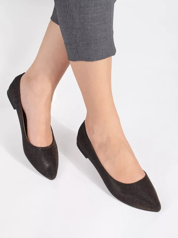 Juodos blizgučių balerinos su plokščiais kulniukais