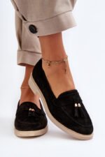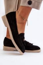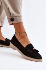 Moteriski mokasinai, pagaminti iš natūralaus zomšos, pasižymi plokščiu kulnu, kuris užtikrina stabilumą vaikštant. Priekis yra papuoštas subtiliomis kutais, kurie suteikia subtilumo ir stiliaus. Profiluotas vidpadis suteikia papildomo komforto ilgai nešiojant. Tai puikus pasirinkimas tiems, kurie vertina tiek madingą išvaizdą, tiek naudojimo patogumą. Rinkdamiesi dydį, prašome vadovautis dydžių lentele.
