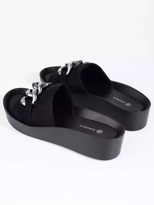 Juodos moteriškos platforminės šlepetės su grandinėle