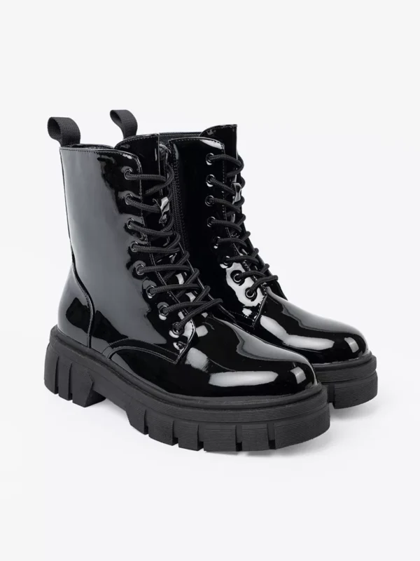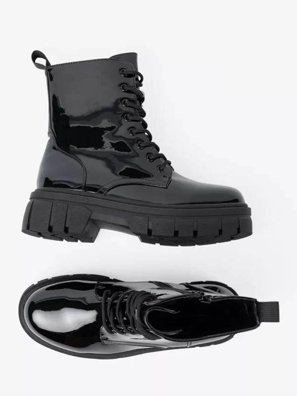 „Chunky“ stiliaus avalynė jau ne pirmą sezoną karaliauja mados pasaulyje, o mūsų lakuoti grublės batai – puikus to pavyzdys. Jie ne tik suteikia papildomo stiliaus, bet ir vizualiai pailgina kojas bei suteikia pasitikėjimo savimi. Šie batai yra sukurti taip, kad būtų patogūs visą dieną – minkštas vidpadis ir tvirtas kulnas palaiko pėdą. Nesvarbu, ar planuojate ilgą pasivaikščiojimą mieste, ar ieškote išskirtinio akcento vakarėliui, šie juodi lakuoti grublės batai taps jūsų nepakeičiamais palydovais. Lengvas užsegimas raišteliais leidžia pritaikyti prigludimą pagal individualius poreikius.