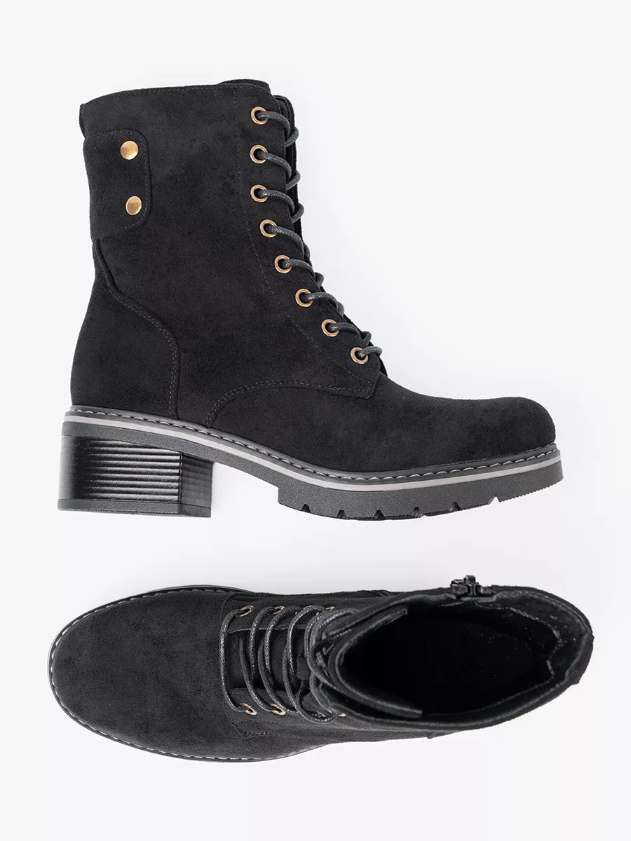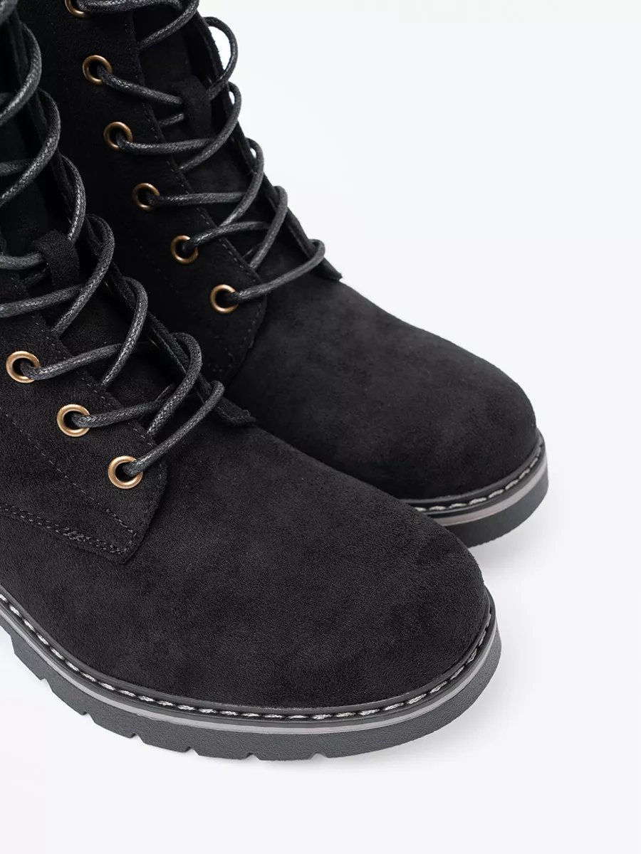 Šie juodi batai pasižymi itin stambiu ir patvariu padu, kuris užtikrina puikų sukibimą su įvairiais paviršiais, net ir slidžiomis dangomis. Tai ypač svarbu užtikrinant saugumą ir stabilumą judant mieste ar gamtoje. Batų vidus paminkštintas, todėl pėdos jaus jausmą komfortą net ir ilgą dieną. Subtilūs, bet stilingi akcentai suteikia šiems batams charakterio, o klasikinis suvarstymo mechanizmas leidžia reguliuoti aulinuko prigludimą pagal individualius poreikius. Tai investicija į Jūsų stilių ir patogumą ilgam laikui.