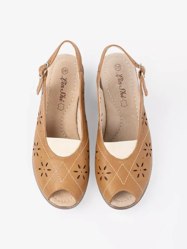 Šios caramelinės ažūrinės basutės su pleištu yra skoningas ir patogus pasirinkimas bet kuriam vasaros drabužių deriniui, suteikiantis tiek elegancijos, tiek šiuolaikinės mados pojūtį.