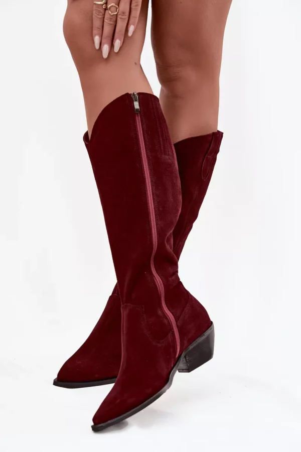 Šie „Kovbojiško stiliaus moteriški batai Zazoo 4225” pagaminti iš aukštos kokybės natūralios nabuko odos, pasižymi universaliu dizainu ir neprilygstamu komfortu. Tamsiai burgundiškos spalvos odiniai batai nenuilstamai pabrėžia elegantišką kiekvienos moters stilių. Skirti dėvėti tiek kasdien, tiek ypatingoms progoms, šie batai neabejotinai suteiks papildomos puošnumo jūsų aprangai.