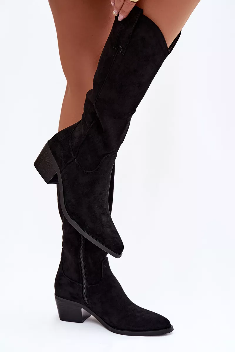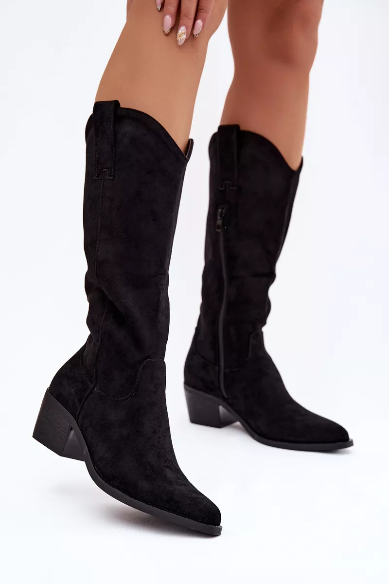 Moteriški kaubojiški batai, pagaminti iš ekologiško zomšo, yra stilingas modelis, įkvėptas vakarietiško stiliaus. Ant būdingo, nuožulnaus kulno jie pabrėžia figūrą ir suteikia visumai ypatingą charakterį. Smailūs priekiai suteikia jiems elegancijos, o minkšta medžiaga padengtas putų pašiltinimas užtikrina komfortą ir šilumą vėsesnėmis dienomis. Modelis yra įsispiriamas, o papildomas užtrauktukas palengvina apsiavimą ir prigludimą. Puikiai tinka rudens-žiemos deriniams, tiek kasdieniams, tiek ir modernesniems. Rinkdamiesi dydį, atkreipkite dėmesį į žemiau pateiktą dydžių lentelę.