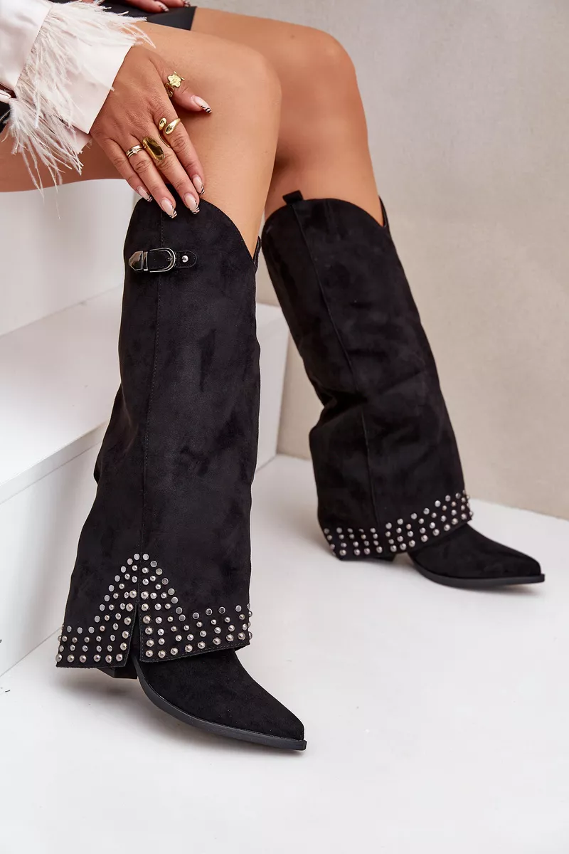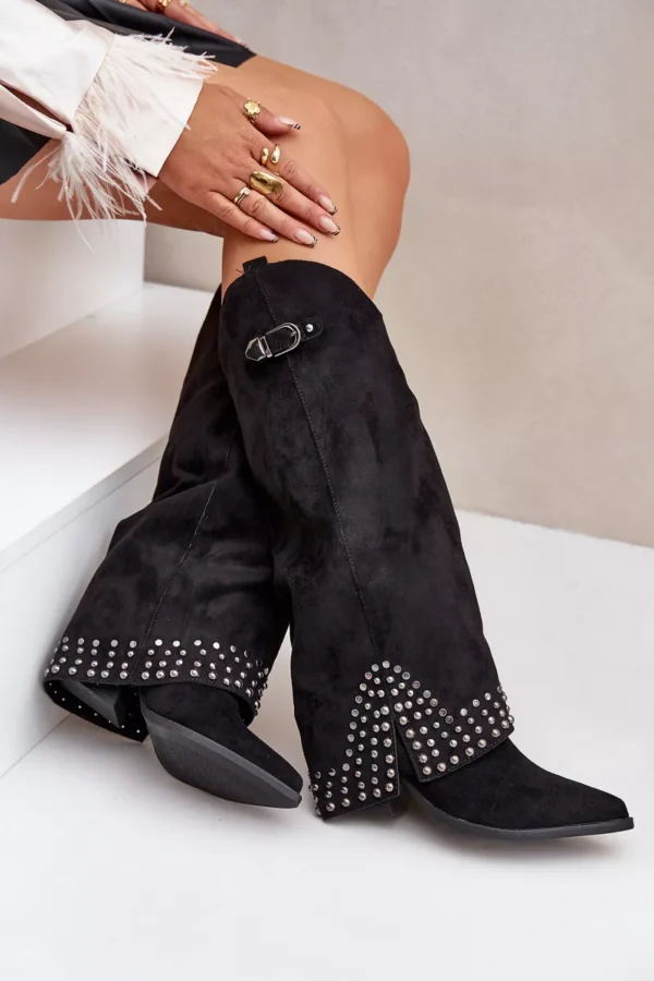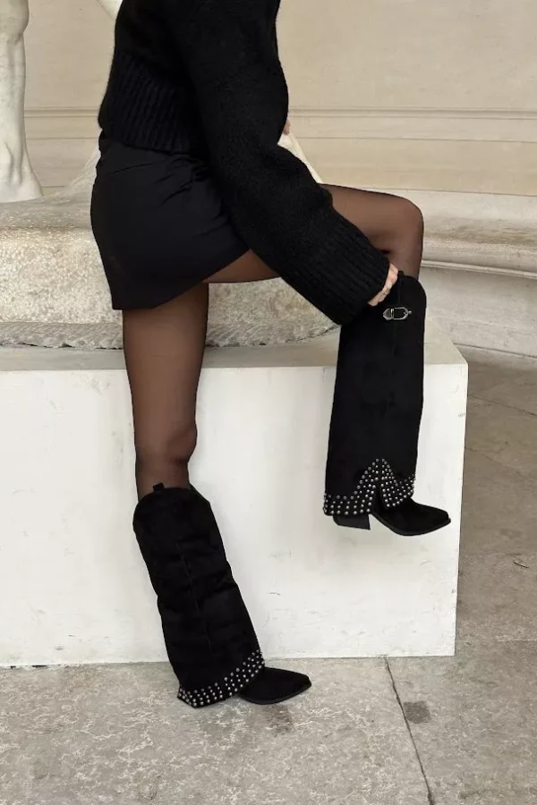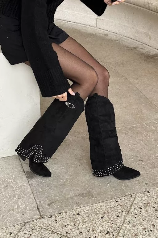 Stilingi moteriški aulinukai pagaminti iš eko zomšo. Modelis išsiskiria atlenkiama auliuku, puoštu kalnų krištolo akutėmis ir elegantiška sagtimi. Smailios noselės suteikia avalynei elegancijos ir pabrėžia jos išskirtinį dizainą. Idealus pasirinkimas moterims, vertinančioms madą ir originalumą kasdienėse stilizacijose. Renkantis dydį, prašome vadovautis dydžių lentele.