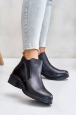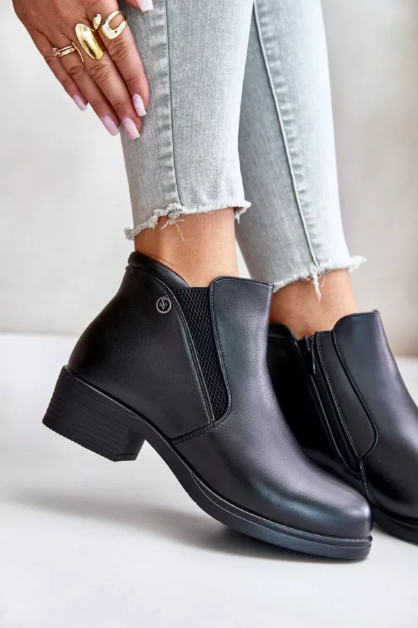 Moteriški aulinukai iki kulkšnies. Atsidūrę ant žemo kulniuko, jie užtikrina patogumą kasdien dėvint. Užsegimas užtrauktuku leidžia greitai ir lengvai apsiauti bei nusiauti batus. Vidus apšildytas storu kailiu. Suapvalinti priekiai. Šis modelis puikiai tiks prie laisvalaikio stilių! Rinkdamiesi dydį, prašome vadovautis dydžių lentele.