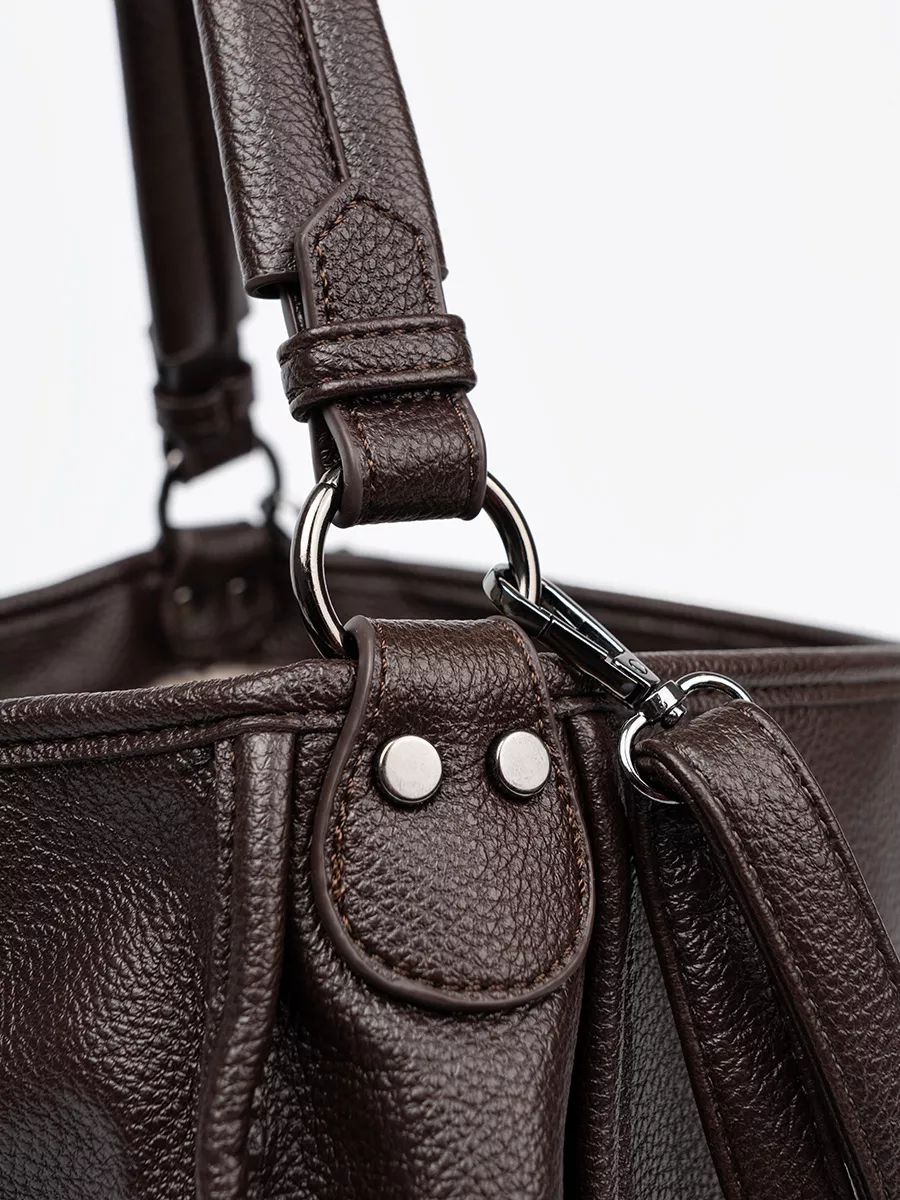 Ši “Classic Brown Shoulder Bag” rankinė yra itin talpi ir funkcionali. Viduje yra keletas skyrių, leidžiančių lengvai sutvarkyti visus būtinuosius daiktus – nuo telefono ir raktų, iki kosmetikos ir dokumentų. Patogios rankenos ir reguliuojama petneša leidžia nešioti rankinę tiek per petį, tiek kirsti per krūtinę, užtikrinant komfortą nešiojant net per ilgas dienas.