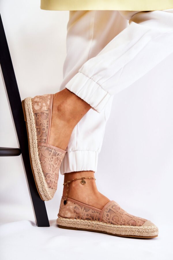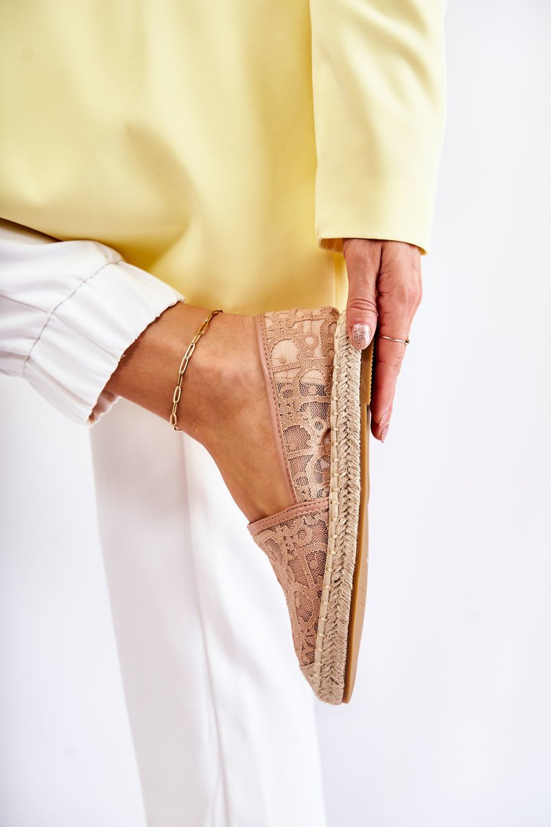 Klasyczne damskie espadrilės. Batai, kurie tiks daugeliui jūsų įvaizdžių. Espadrilės dekoruotos ažūru. Suapvalinta nosis su siūlėmis. Bato padas dekoruotas džiuto pynimu. Minkštas „Comfort“ vidpadis apsaugo nuo kojų nuovargio. Būtinai peržiūrėkite visą mūsų moteriškų espadrilių kolekciją. Pasirinkdami dydį, prašome vadovautis dydžių lentele.