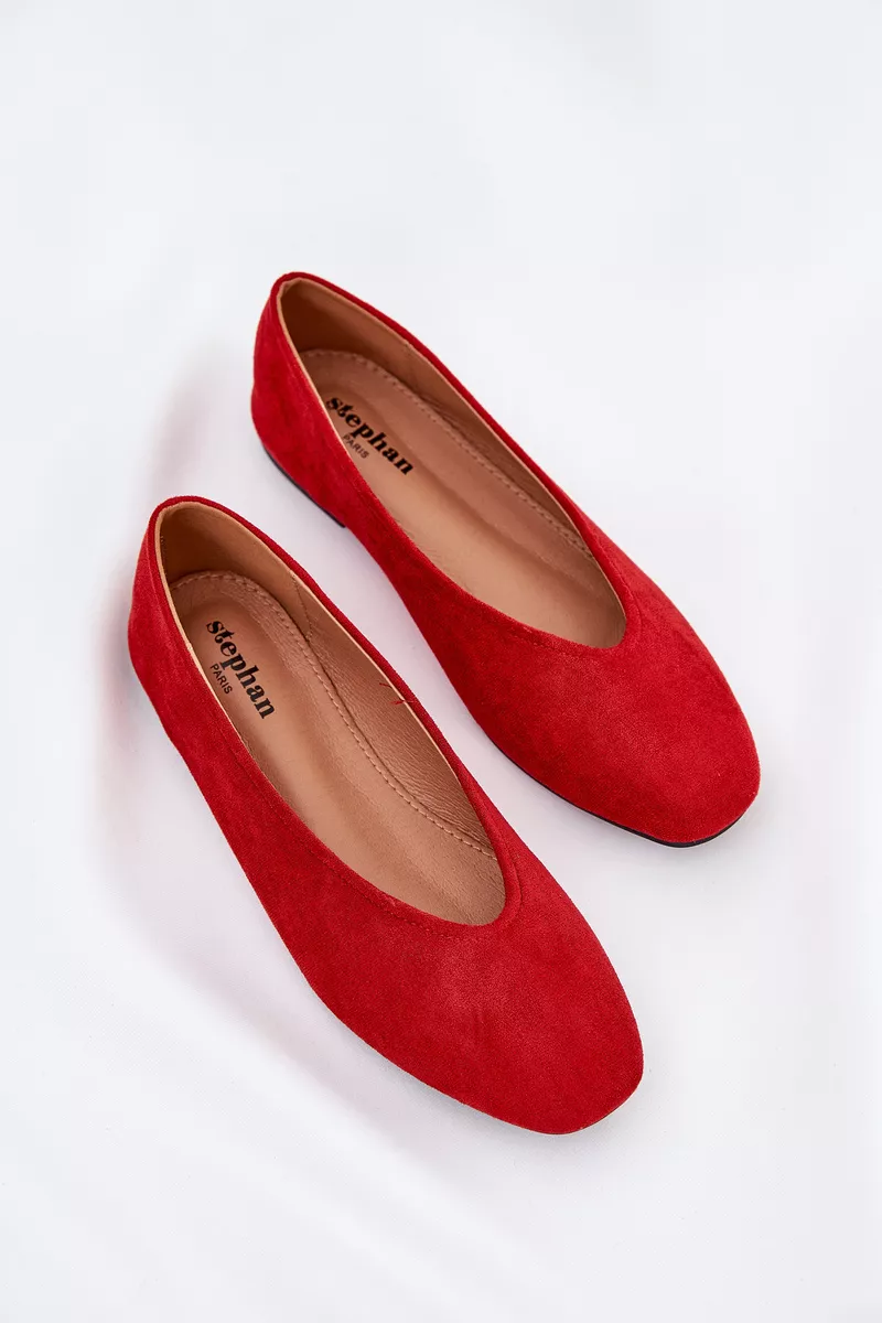 Šios klasikinės balerinos yra pagamintos iš aukštos kokybės ekologiško zamšo, pasižymintis išskirtiniu raudonu atspalviu. Puikiai tinka kasdienei veiklai, jos suteikia ne tik elegancijos, bet ir komforto visą dieną. Su rafinuotai suapvalinta batuko priekine dalimi, šios balerinos jūsų kiekvieną žingsnį pavers grakščiu ir stilingu.