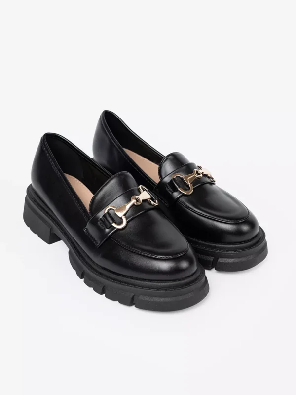 Šie klasikiniai juodi loaferiai su metaline sagtimi – tai ne tik avalynė, bet ir stiliaus pareiškimas. Pridėkite juos prie savo kolekcijos ir pajuskite skirtumą.