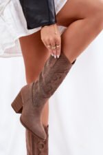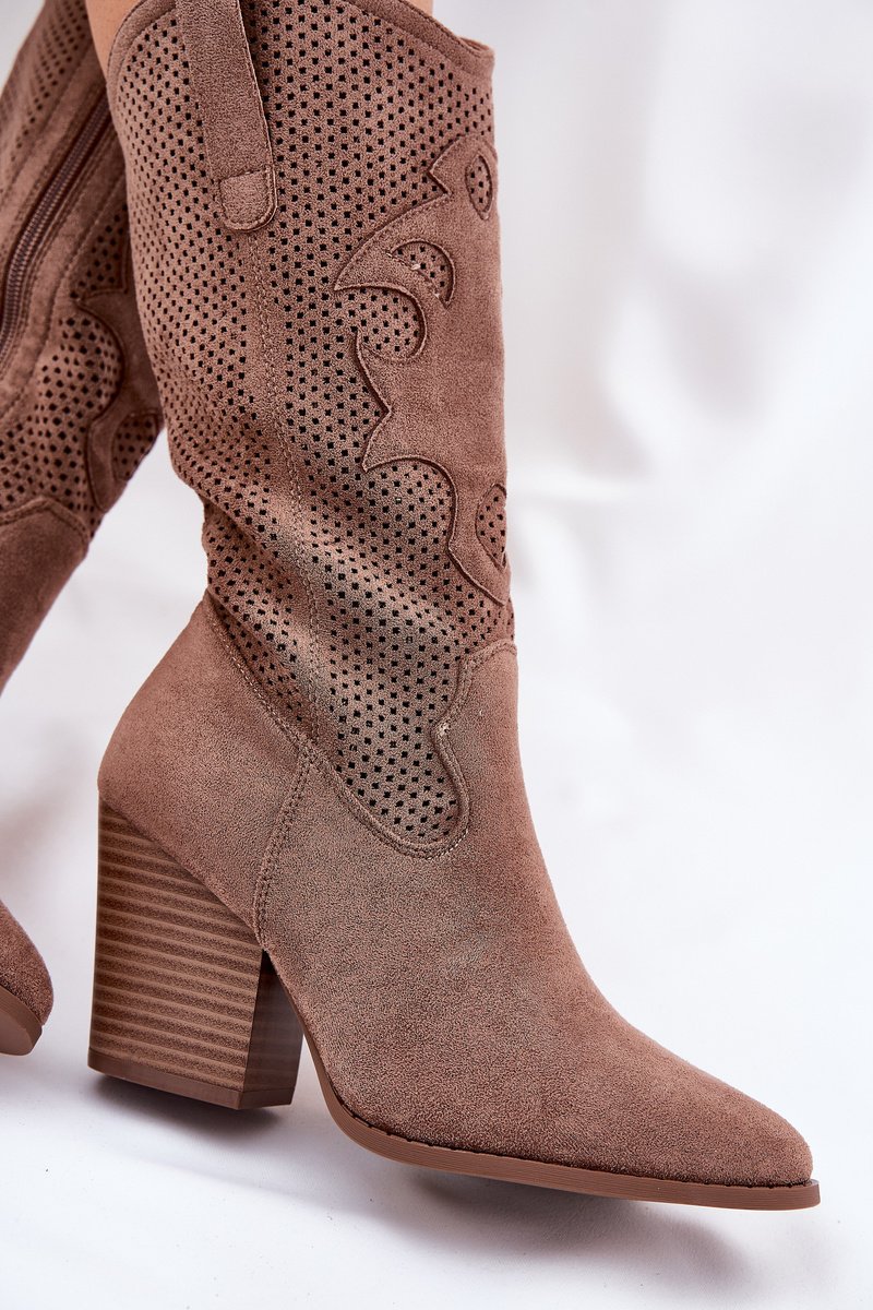Moteriški kaubojiški batai, “S.Barski” prekės ženklo. Pagaminti iš eko zomšo, derinantys eleganciją su originaliu stiliumi. Ažūrinis batviršis suteikia lengvumo ir charakterio. Migdoliniai aulinukai. Užsegami užtrauktuku. Batviršis siekia iki pusės blauzdos. Šiuos stilingus batus galite naudoti laisvalaikio ir boho stiliaus deriniams. Pasirinkdami dydį, vadovaukitės dydžių lentele.