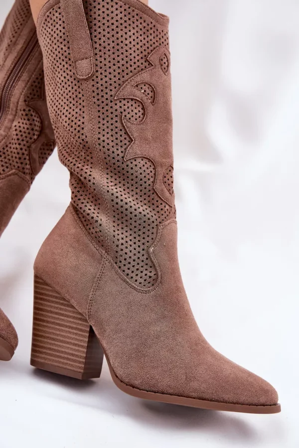 Šie kaubojiški aulinukai turi užtrauktuką, kuris užtikrina patogų apsimovimą ir nusiėmimą. Batų auliukas siekia iki pusės blauzdos, todėl jie puikiai dera tiek prie kasdienių, tiek prie boho stiliaus drabužių.