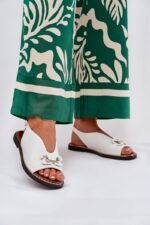 Eleganti sandalai iš ekoodos – puikus pasirinkimas vasaros dienoms, derinantis stilių ir patogumą. Priekyje batai turi puošmeną, suteikiančią jiems ypatingo žavesio. Plokščiu kulnu užtikrina komfortą visą dieną. Segami reguliuojamu dirželiu su sagtele, leidžia pritaikyti prie pėdos. Šie sandalai puikiai papildys sukneles, sijonus ir medžiaginius kelnes, sukuriant elegantišką ir madingą įvaizdį. Rinkdamiesi dydį, vadovaukitės dydžių lentele.
