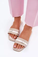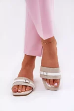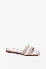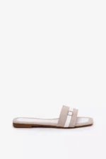 Jei ieškote elegantiškų ir patogių basučių, Plokšti moteriški sandalai su juostele ir sagtimi smėlio-baltos spalvos Zilina bus puikus pasirinkimas. Šie sandalai išsiskiria savo moderniu dizainu bei aukštos kokybės medžiagomis, kurios užtikrina ilgaamžiškumą ir malonų pojūtį dėvint.