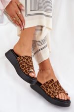 Stilingos moteriškos šlepetės iš eko zomšo. Įmontuotos ant subtilaus pleišto ir platformos. Minkštas vidpadis užtikrina patogumą visą dieną. Priekyje yra subtilus, dekoratyvus akcentas, suteikiantis ypatingo charakterio. Puikiai tinka šiltoms dienoms, šios šlepetės puikiai dera su vasarinėmis suknelėmis, sijonais ir kelnėmis, suteikdamos lengvumo kiekvienai stilizacijai. Rinkdamiesi dydį, vadovaukitės dydžių lentele.