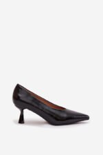 Eleganti batai, pagaminti iš eko odos, yra klasikinis pasirinkimas moterims, kurios vertina stilių ir patogumą. Plona batų linija su smailiais priekiais gražiai lieknina pėdą ir suteikia siluetui lengvumo, pabrėždama batų moterišką charakterį. Modelis įtvirtintas ant stabilaus, praplatinamos stiletto tipo kulno, kuris sujungia elegantišką išvaizdą su didesniu dėvėjimo patogumu – užtikrina žingsnio stabilumą ir kartu suteikia modernumo. Dėl savo nesenstančio dizaino šie batai puikiai tiks tiek biuro stiliui, tiek ypatingoms progoms. Jie idealiai dera su suknelėmis, sijonais ar elegantiškais kelnėmis, papildydami moterišką garderobą. Renkantis dydį, prašome vadovautis dydžių lentele.