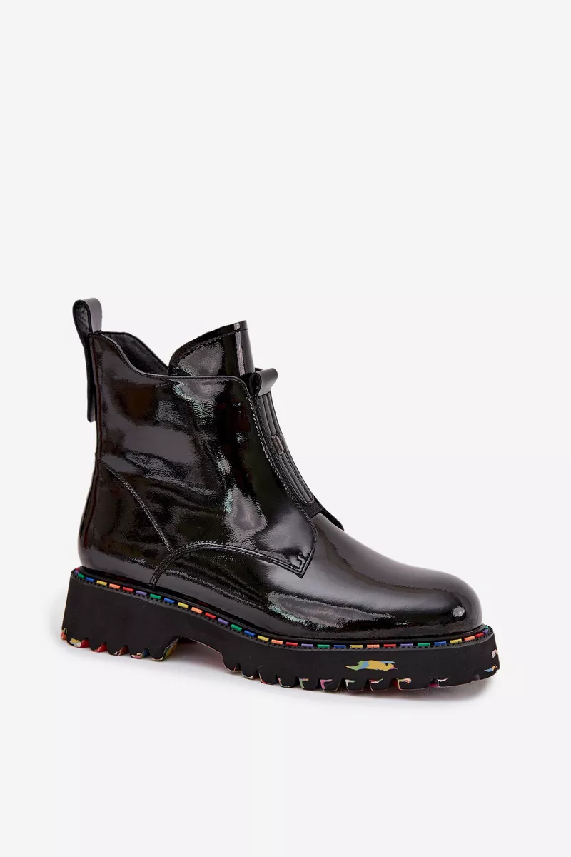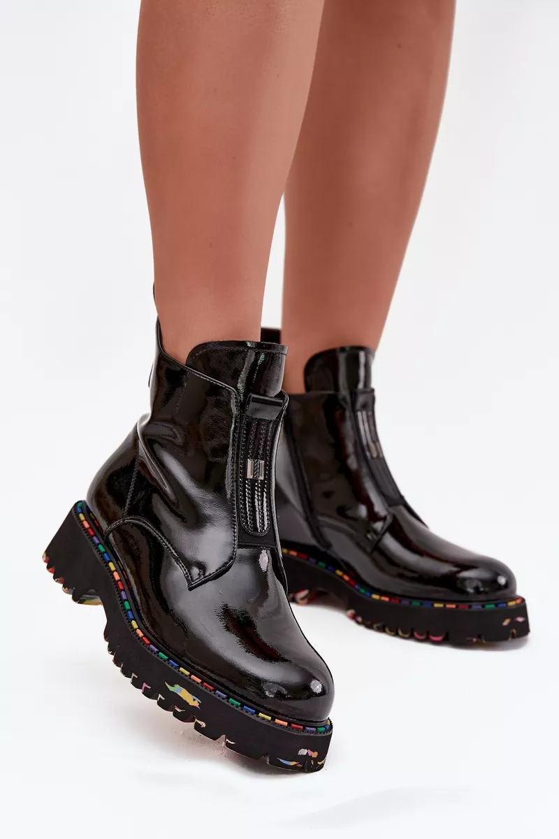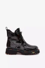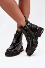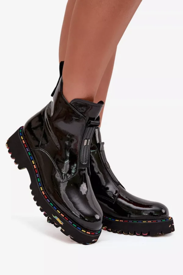 Moteriški ARTIKER botai – tai elegantiškas pasirinkimas, derinantis modernią išvaizdą ir patogumą naudoti. Pagaminti iš aukštos kokybės lakuotos natūralios odos, jie atrodo stilingai ir yra itin patvarūs. Plokšti kulniukai su subtiliu platformu garantuoja stabilumą ir komfortą kasdien dėvint. Užtrauktuku užsegamas modelis leidžia lengvai apsiauti ir nusiauti, o subtili priekyje esanti detalė suteikia visam įvaizdžiui prašmatnumo. Švelniai veltiniu paminkštintas vidus užtikrina malonią šilumą, todėl batai puikiai tiks rudens ir žiemos sezonui. Tai universalūs batai, tinkantys tiek prie kasdienių, tiek prie elegantiškesnių įvaizdžių. Renkantis dydį, vadovaukitės dydžių lentelės.