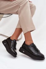 Moteriški Artiker firmos pusbačiai, pagaminti iš lakuotos natūralios odos, yra pasiūlymas, jungiantis eleganciją su kasdieniu patogumu. Blizgi apdaila suteikia jiems stilingą charakterį, o tvirtas padas užtikrina dėvėjimo komfortą ir modernią išvaizdą. Vietoj tradicinių raištelių, modelyje yra elastingos gumytės, imituojančios suvarstymą, dėl ko batai įgauna originalią išvaizdą ir yra itin praktiški – juos lengva apsiauti ir nusiauti. Tai pusbačiai, kurie puikiai tiks miesto stilizacijoms, derinant eleganciją su sportiško neįpareigojančio stiliaus dvelksmu. Rinkdamiesi dydį, vadovaukitės dydžių lentele.