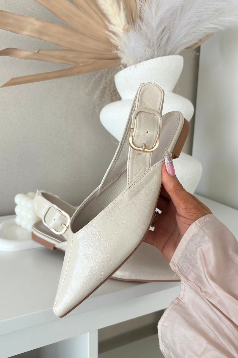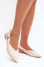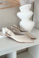 Moteriški balerinos, pagaminti iš eko odos. Liekni, smailūs priekiai suteikia joms lengvumo ir pabrėžia moterišką stilių, o plokščias kulnas užtikrina patogumą vaikščiojant. Priekyje esanti siūlė suteikia subtilaus charakterio, o dirželis gale su dekoratyvine sagtį tarnauja kaip reguliavimo ir efektingo detalės funkcija. Tai modelis, kuris puikiai papildys tiek laisvalaikio, tiek formalesnes stilizacijas. Renkantis dydį, prašome vadovautis dydžių lentelę.