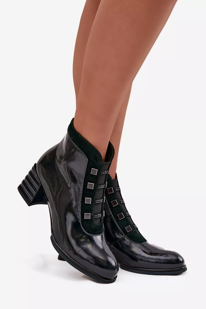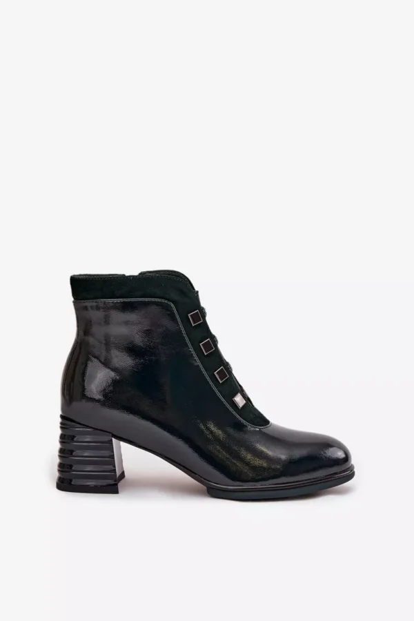 Šie batai pagaminti iš aukščiausios kokybės natūralios odos, kas užtikrina jų ilgaamžiškumą ir atsparumą. Odos paviršius yra lakuotas, todėl suteikia ypatingo blizgesio, pabrėžia eleganciją ir unikalumą. Priekyje puošiantys dekoratyviniai elementai prideda ypatingo žavesio.