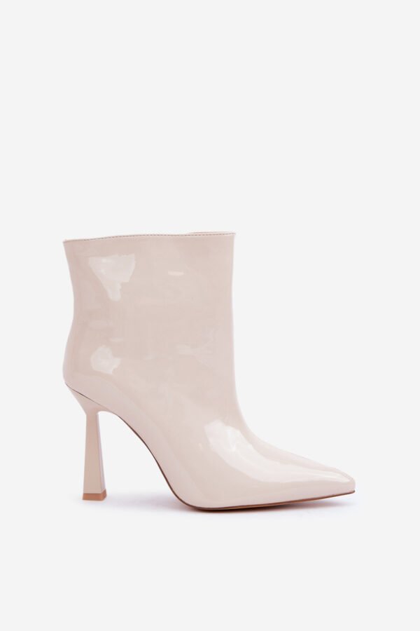Lakuotos moteriškos aulinukai su aukštu aukštakulniu. Smailianosiai modeliai, kurie vizualiai lieknina pėdą. Apšildyti aulinukai su auliuku puikiai tiks vėsesnėmis dienomis. Idealiai tinka specialioms progoms. Renkantis dydį, prašome vadovautis dydžių lentele.