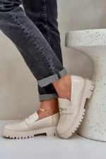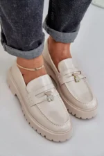 Švelnios smėlio spalvos mokasinai, pagaminti iš ekologiškos odos, yra ne tik patvarūs, bet ir draugiški aplinkai. Jie puikiai tinka užtikrinti ilgaamžį komfortą ir subtilų žavesį.