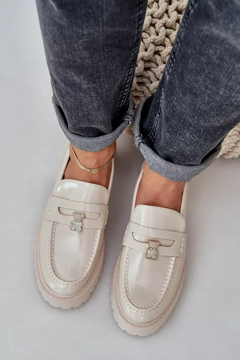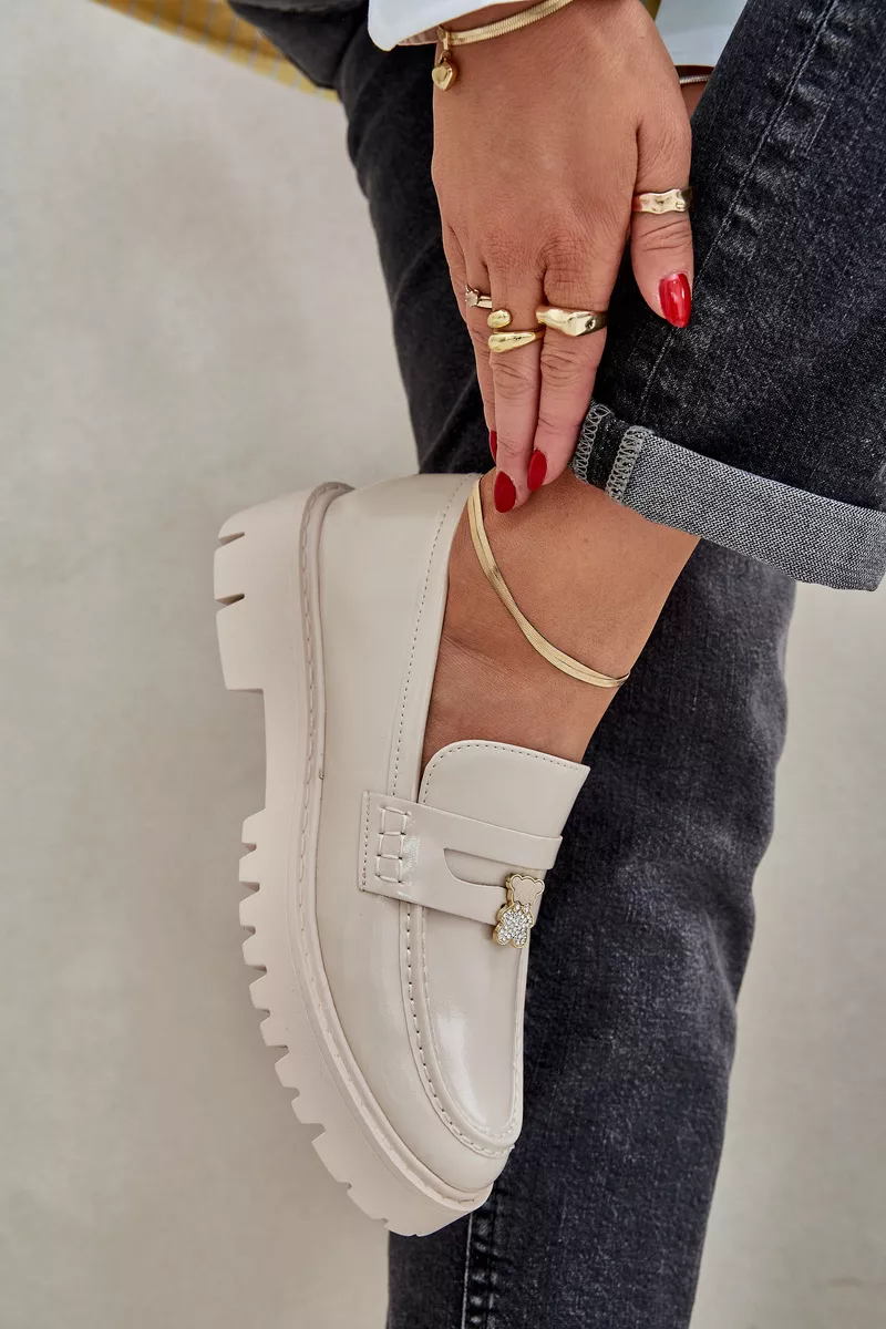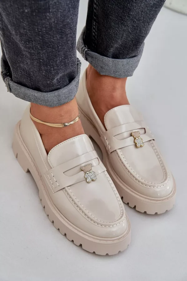 Mokasinai turi įdomų dizainą su dekoratyvine meškiuko forma, suteikiančia žaismingumo jūsų kasdieniam įvaizdžiui. Tai ideali akcento detalė, pritraukianti dėmesį ir kurianti unikalų stilių.