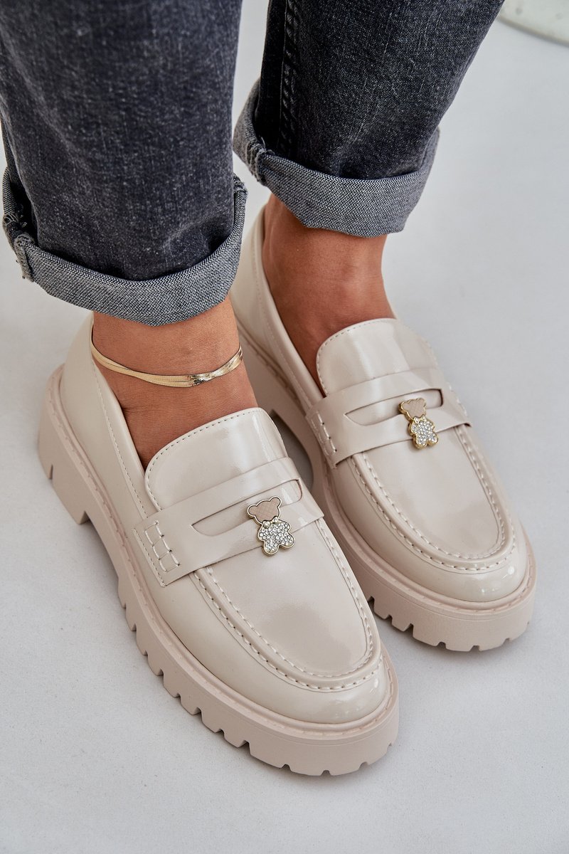 Moteriski mokasinai pagaminti iš eko odos yra patogus pasirinkimas, derinantis eleganciją su originaliu akcentu. Apvalūs priekiai užtikrina patogumą, o modelis išsiskiria žavingu meškiuko formos segtuku ant priekinės juostelės, suteikiančiu žaismingumo ir unikalumo. Tai puikus pasiūlymas laisvalaikio stiliams, kuriems reikia šiek tiek švelnumo ir gaivumo. Rinkdamiesi dydį, prašome vadovautis dydžių lentele.
