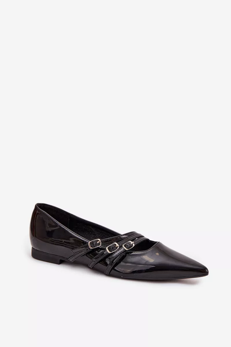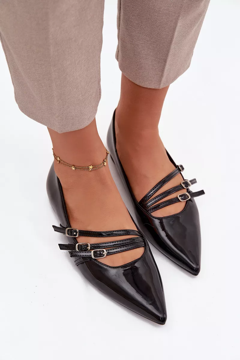 Eleganti blizgančios balerinos su juostelėmis, pagamintos iš ekologiškos odos. Šie juodi balerinai yra puikus pasirinkimas tiek kasdieniniam nešiojimui, tiek ypatingoms progoms. Stilingo ir rafinuoto dizaino, jie turi smailų priekį, kuris optiškai prailgina ir plonina kojas, suteikdamas moteriško žavesio.
