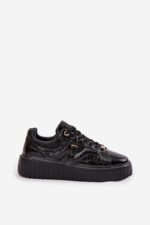 Lee Cooper lakuoti damų sportbačiai ant platformos pasižymi stilingu dizainu, kuris puikiai sujungia komfortą ir modernų įvaizdį. Šie sportbačiai pagaminti iš blizgios ekologiškos odos, todėl pritraukia dėmesį dėl savo subtilaus blizgesio ir elegantiškos apdailos. Platforma ne tik suteikia papildomo aukščio, bet ir garantuoja stabilumą bei komfortą dėvint, tad puikiai tinka miesto kasdienybei.