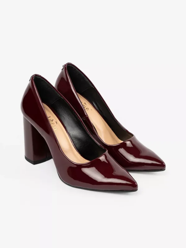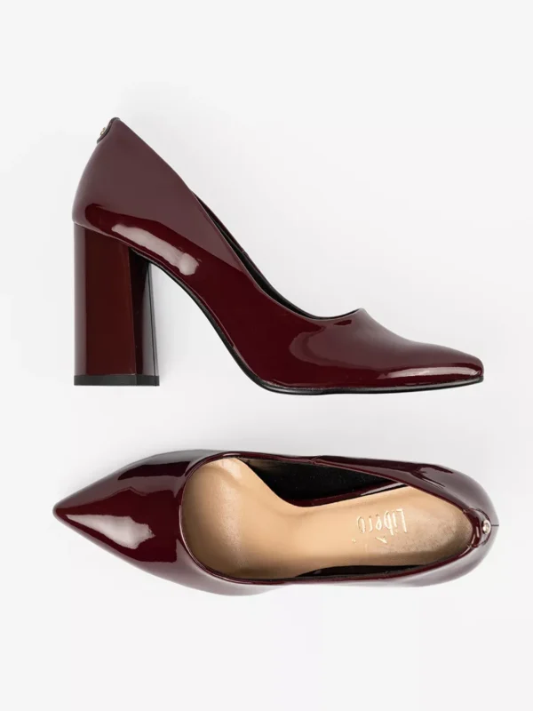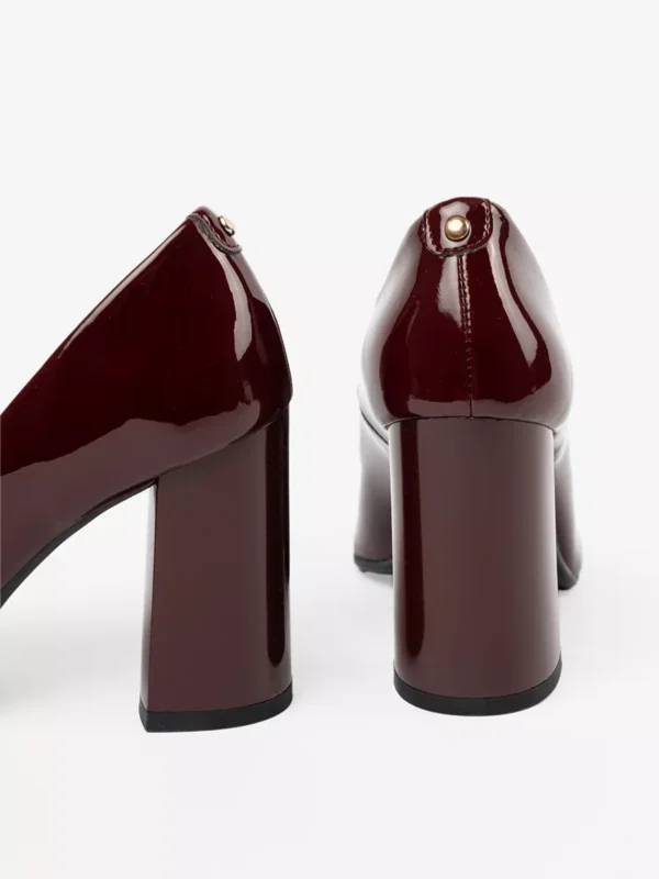 Su šiais bordo spalvos aukštakulniais būsite dėmesio centre. Kiekvienas žingsnis suteiks jums pasitikėjimo, o lakuotos odos medžiaga puikiai tinka tiek dienai, tiek vakarui. Kulno forma – stulpo tipo, kuri užtikrina ypatingą stabilumą einančioms ant kulniuko moterims.