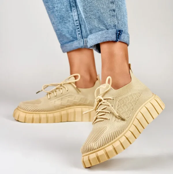 Lankstūs smėlio spalvos moteriški sportiniai bateliai