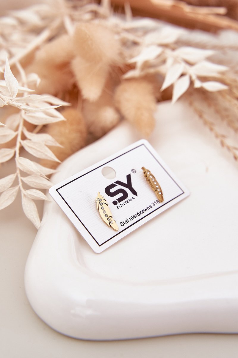 Lapų auskarai su cirkoniu nerūdijančio plieno auksine apdaila