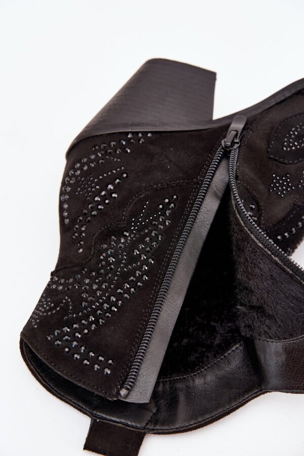 Moteriški kaubojiški aulinukai, pagaminti iš ekologinio zomšo, su stulpeline pakulne, yra madingas pasiūlymas vėsesnioms dienoms. Užsegami užtrauktuku, užtikrina lengvą apsiavimą, o aulo puošyba suteikia jiems būdingo kaubojiško stiliaus. Migdolo formos noselė suteikia subtilumo, o aulo viduje esantis apšiltinimas garantuoja komfortą ir šilumą. Puikiai tinka prie laisvalaikio ir boho stiliaus derinių, šie aulinukai yra idealus pasirinkimas rudens-žiemos sezonui. Renkantis dydį, prašome vadovautis dydžių lentele.
