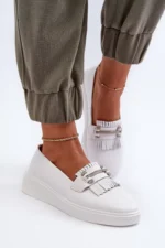 Lengvi moteriški odiniai mokasinai ant platformos yra puikus pasirinkimas moterims, ieškančioms stiliaus ir komforto. Itin kokybiška oda suteikia elegantišką išvaizdą, o platformos padas užtikrina patogią amortizaciją ir papildomą stabilumą kiekviename žingsnyje. Šie mokasinai puikiai tinka įvairių stilių deriniams, nesvarbu, ar tai būtų kasdienis, ar elegantiškas aprangos variantas. Įsigijus šiuos mokasinus, tikrai pajusite modernią prabanga ir išskirtinį dizainą.