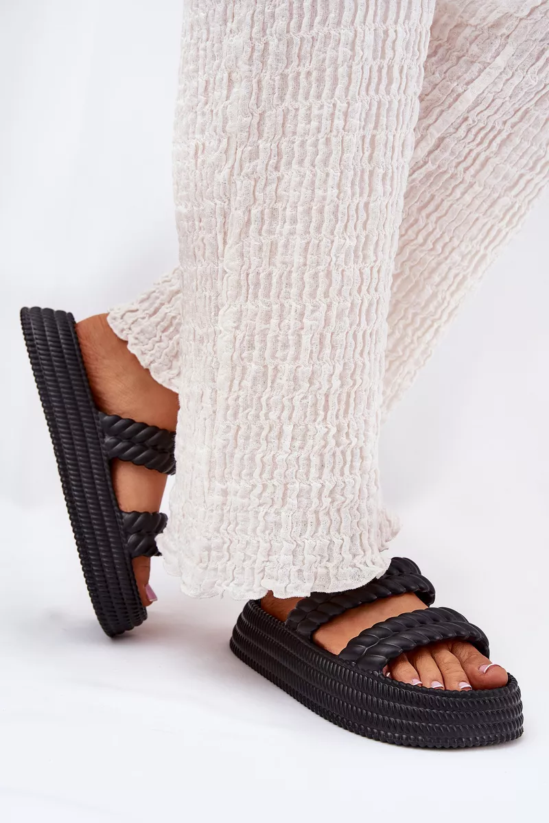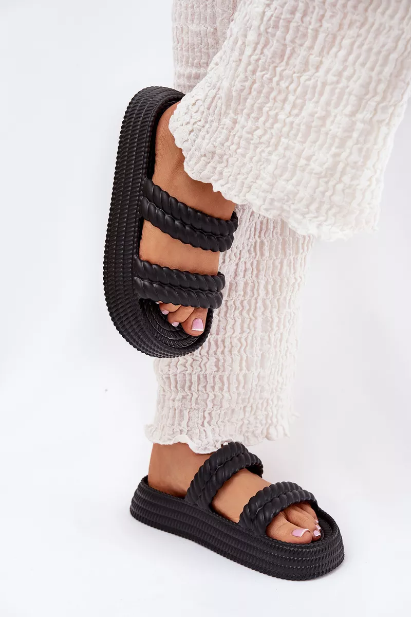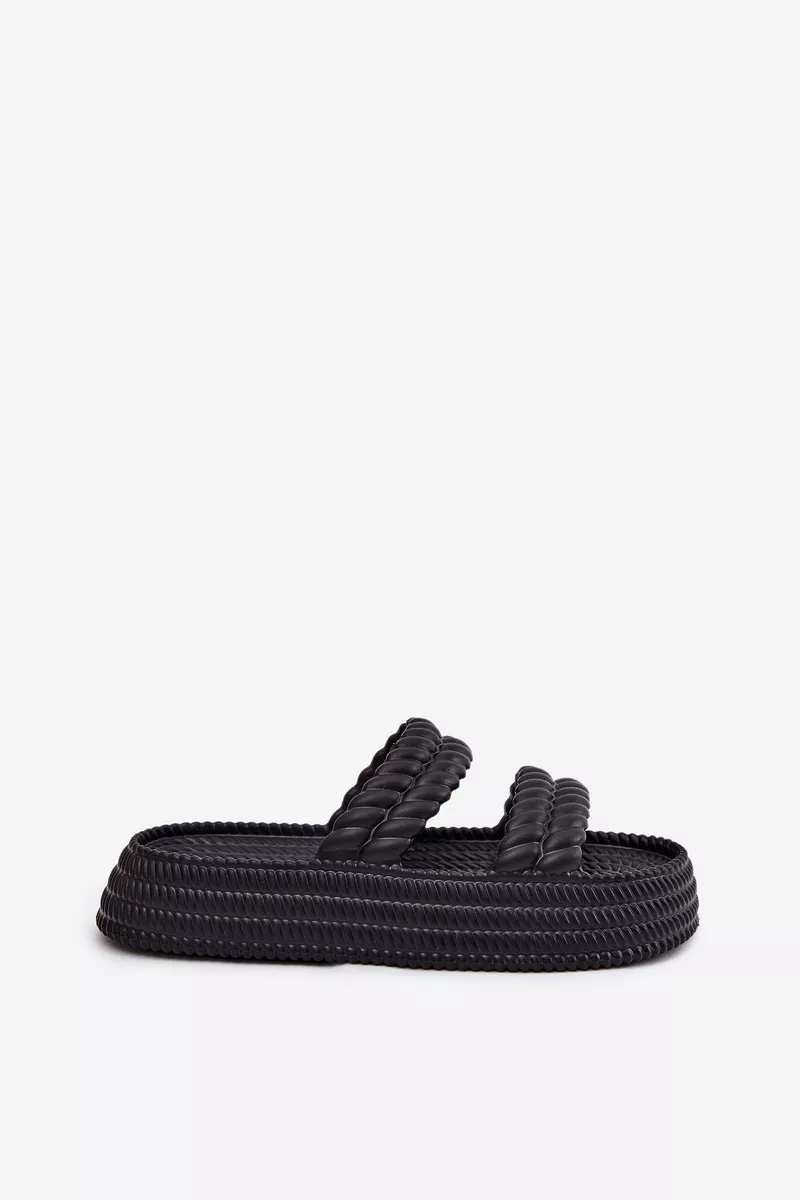Paprastos, tačiau elegantiškos juodos spalvos šlepetės su dviem dirželiais priekyje ne tik puikiai dera prie skirtingų aprangos derinių, bet ir užtikrina tvirtą žingsnį. Jos puikiai tinkamos ne tik pasivaikščiojimams gamtoje, bet ir ilsėjimuisi prie baseino ar pajūryje, kur stilius ir patogumas yra esminiai.
