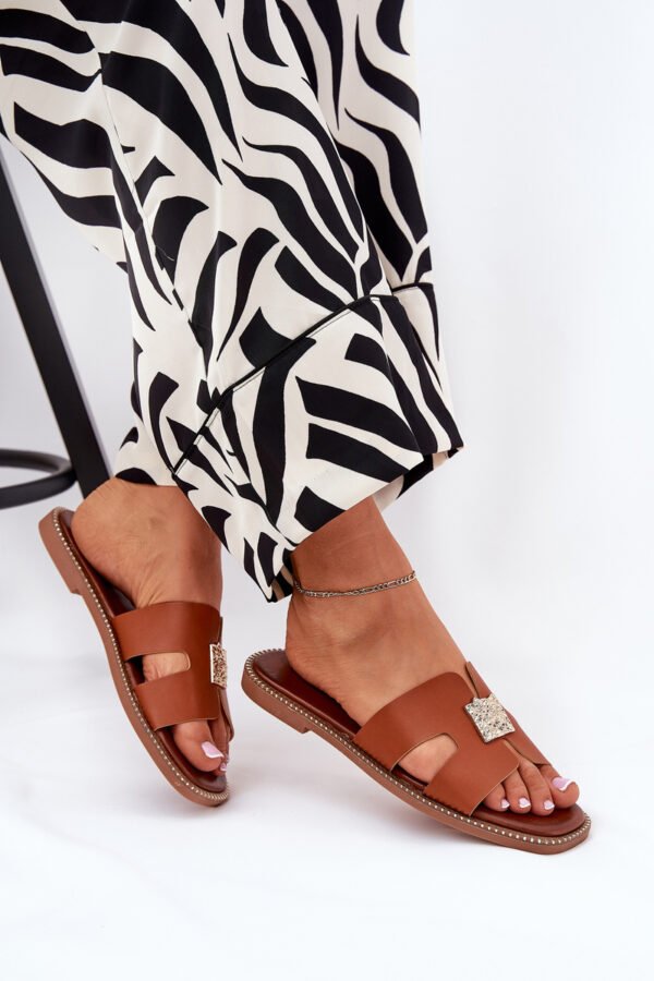 Eko odinės šlepetės su plokščiu kulnu yra elegantiškas ir patogus pasirinkimas šiltoms dienoms. Išpjovos ant batviršio ir subtilus papuošalas suteikia joms modernią išvaizdą, todėl jos yra lengvos ir stilingos. Šios šlepetės puikiai tiks tiek prie kasdienių, tiek prie vasaros pasivaikščiojimų aprangos. Rinkdamiesi dydį, prašome vadovautis dydžių lentele.